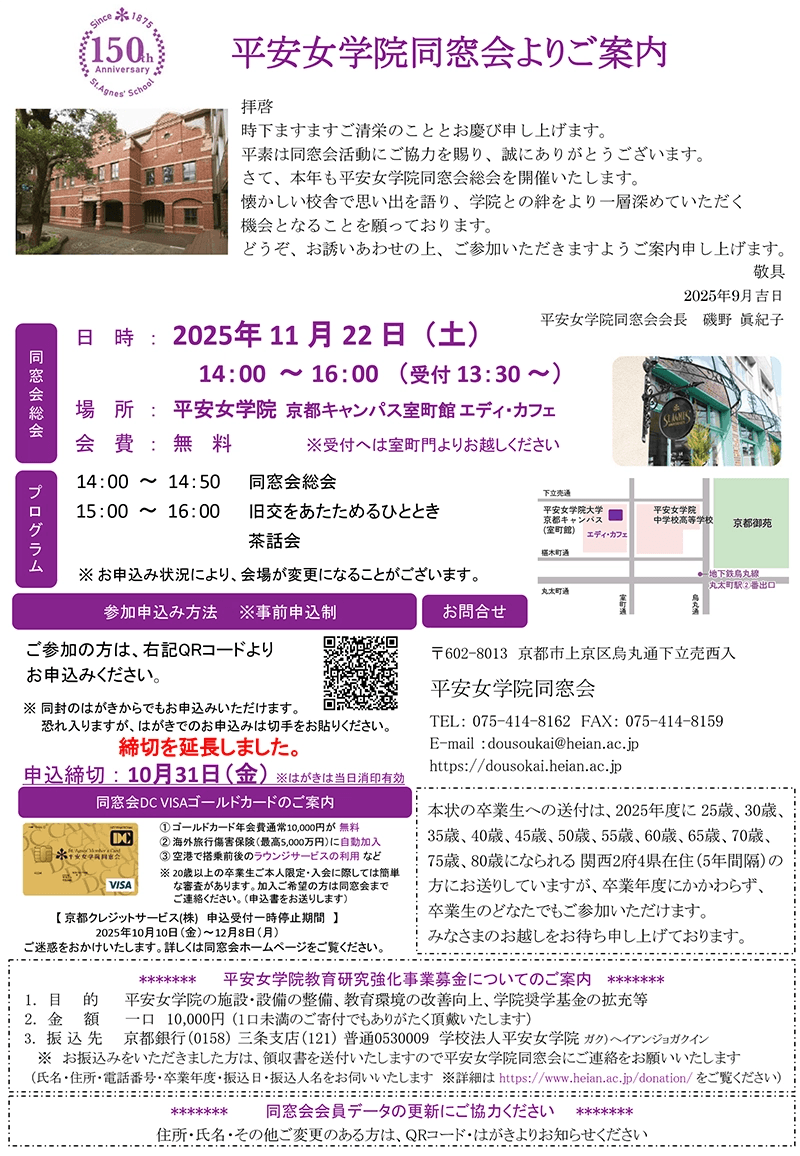【2025年11月22日開催】平安女学院同窓会総会のご案内【受付終了】